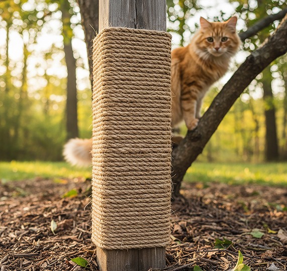 Turn a climbing frame pole into a cat scratcher.